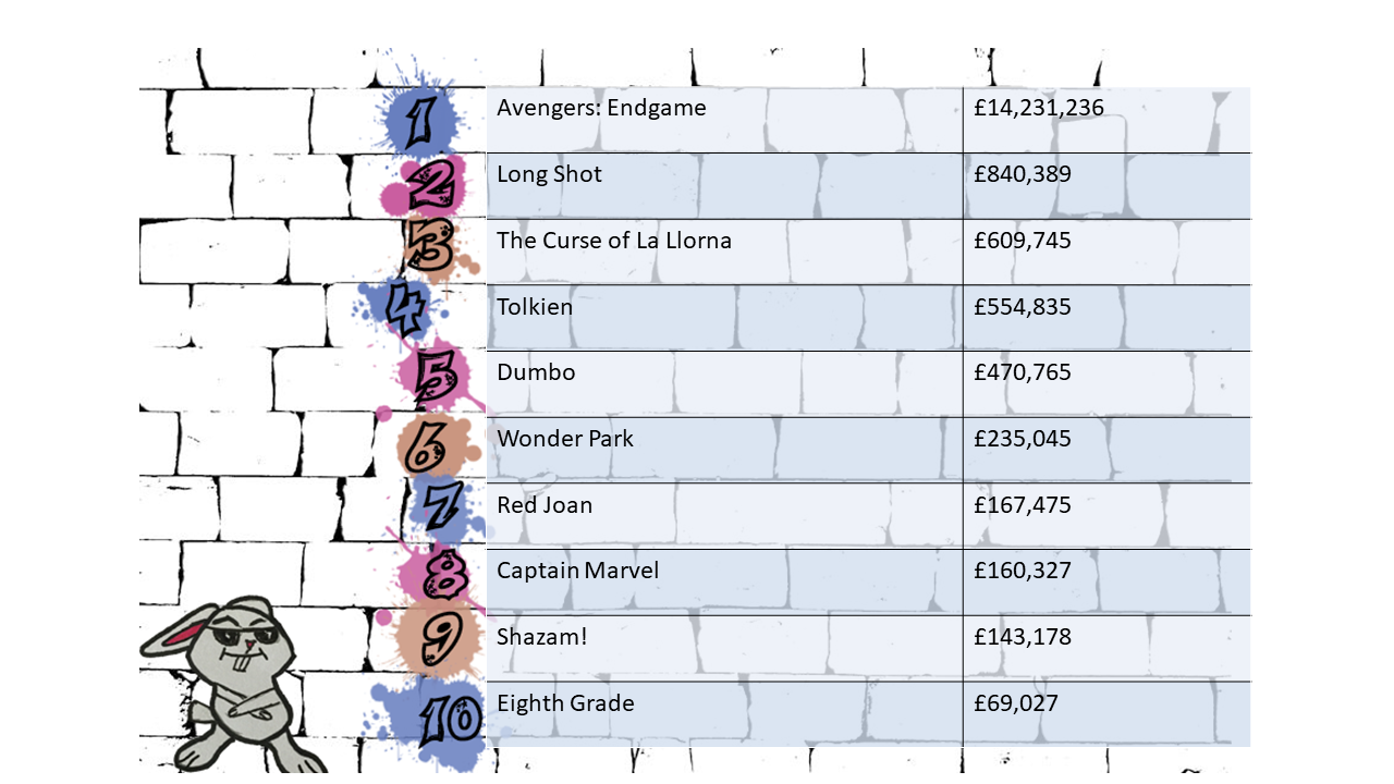 This is the second week Avengers: Endgame sits as king of the box office. It still out beats all the competition even though three new films came out this weekend and they’re not small films either. The three new films are genuine summer blockbusters with the most successful of them being, The Long Shot, Seth Rogan’s new comedy venture. Not only does Avengers: Endgame still stand victorious in the UK, it is not the second highest grossing film of all time, sinking the Titanic to third and coming up close behind Avatar. Because of Disney’s acquisition of Fox, it means that all the proceeds form Tolkien now go to Disney and they technically have four films in the top ten UK box office.