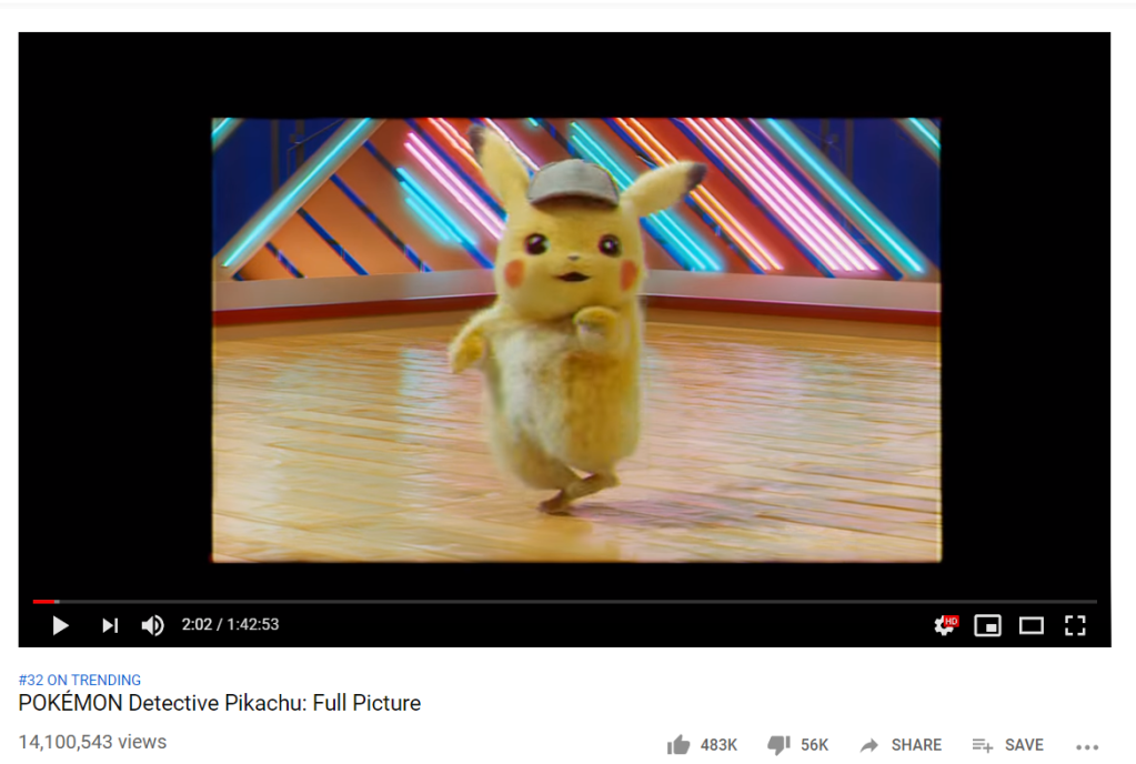 The video its self is meant to look like a leaked, prated version of the whole film. And it does look like an authentic copy. The length of the video matches the run time of the film and it begins with the opening title credits for the studios who produced the film. It then begins to play the first 30 seconds of the film before quickly cutting to what the video actually consists of. The rest of the video is one and a half hour of Pikachu dancing to 90’s style music. It has over 14 million views and 44 thousand likes.